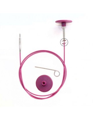 Los cables giratorios lisos confeccionados con acero inoxidable de la marca KnitPro están diseñados con una rotación de 360 grados para evitar torsiones. Los cables están hechos con el mejor acero inoxidable existente de la mayor pureza y están recubiertos con el nylon más liso. Disponibles en longitudes que van desde 20 cm hasta 126 cm, los cables vienen con tapones en los extremos con sus correspondientes llaves que se utilizan para apretar las puntas.